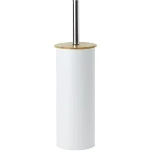 Cepillo escobilla para inodoro con tapa de bambú y mango de acero. Colores: Negro/Blanco. Medidas: 37cm alto y 9,5cm diámetro.