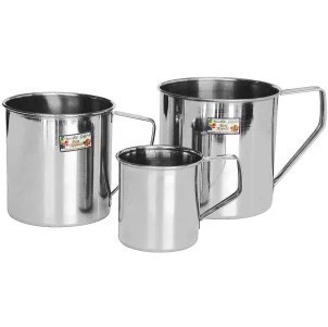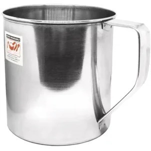 Jarro con asas de acero . Medidas: 10 cm de diametro. Marca: Walplo. Color: Gris.